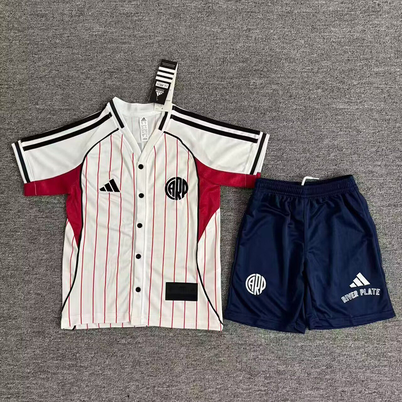 25/26 River Plate White Baseball Jersey Kids Set