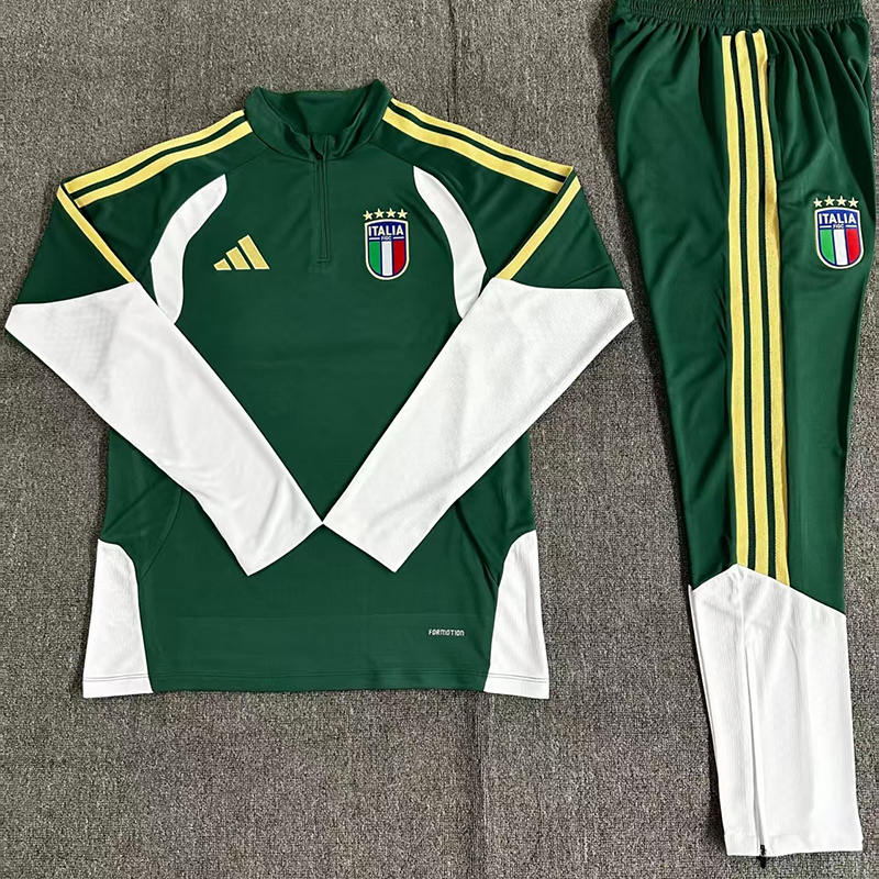 2026 Italy Green Half-Zip Training Suit Adult Set