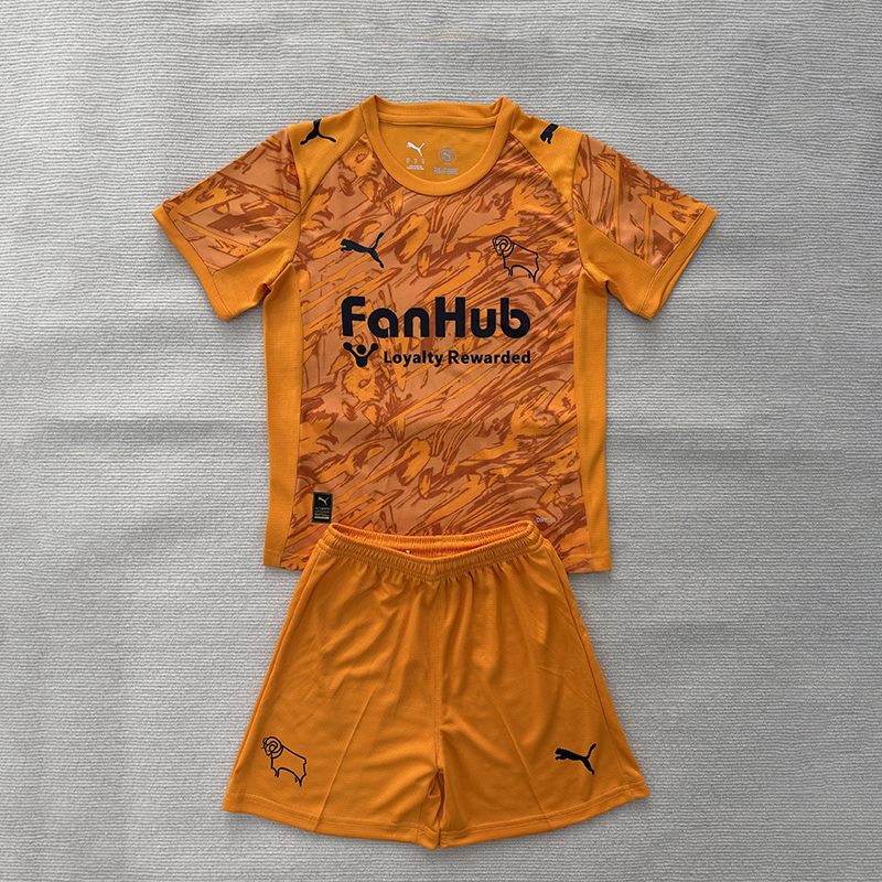 25/26 Derby County Orange Goalkeeper Kids Set