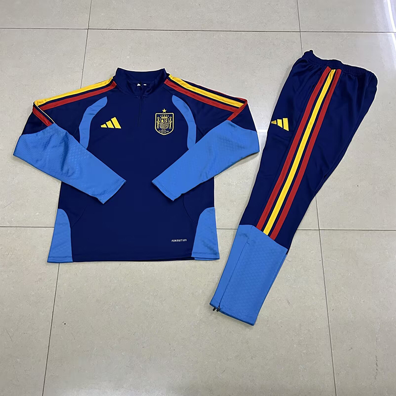 2026 Spain Royal Blue Half-Zip Training Suit Adult Set
